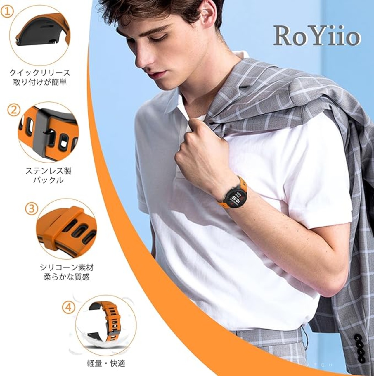 [RoYiio] 時計バンド 20mm 22mm 交換用ベルト シリコーンウォッチバンド 柔らかい 軽量 防汗 通気性 快適な スポーツ 替えバンド 男性女性兼用