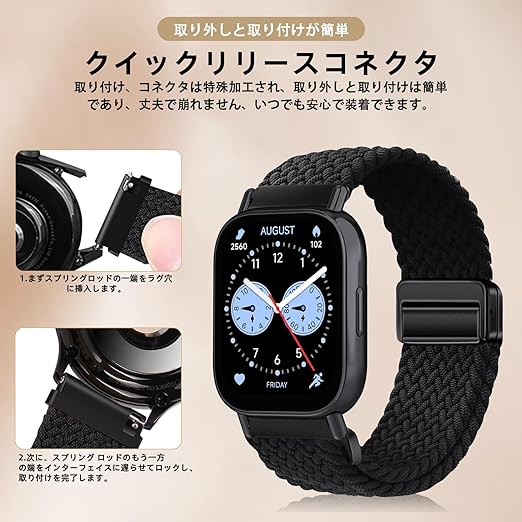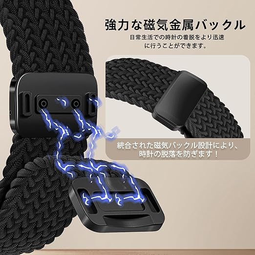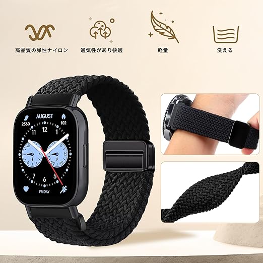 [YealRed] バンド 22mm Xiaomi Redmi Watch 5 Lite/Redmi 5 Active/Xiaomi Watch S4/S3対応 交換バンド 弾性ナイロン製 替えベルト 編組ストラップ 磁気バックル 換えベルト コンパチブルシャオミ S1 Active/S1 Pro(ブラック) a