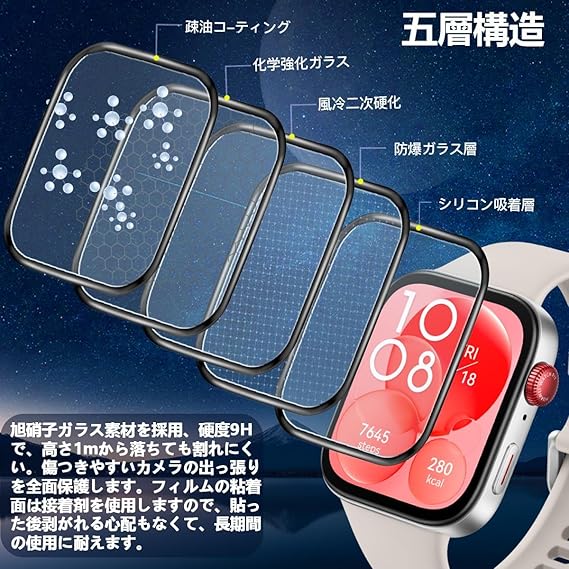 【9H硬度】対応 HUAWEI Watch Fit3 フィルム 全面保護 PET素材と炭素繊維層の組み合わせ。 保護機能を更に強化します。 耐衝撃性と耐傷性に優れ、業界最高レベルの9H硬度に達し、衝撃による画面の破損を最低限まで抑え。特殊な飛散防止設