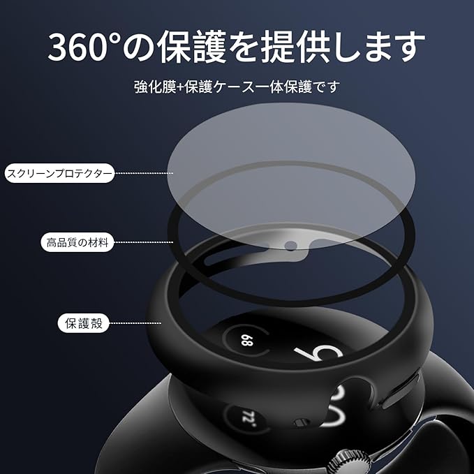 【耐久性に優れたPC素材 】 Google Pixel Watch 3用ケースは耐久性がある硬質なPCフレーム、Watchの美しさを展示する同時にアップルの表面とアーチのエッジをカバーし、完全に傷や汚れ、衝撃から端末をしっかり保護します。