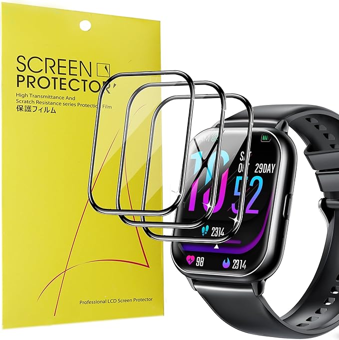 Lamsaw for Aiaema スマートウォッチ 保護フィルム,【3枚セット】全面保護 フィルム 3D全面保護 フロート高感度タッチ高透過率 防水指紋防止 対応 Aiaema R8 スマートウォッチに適用 (3枚) a