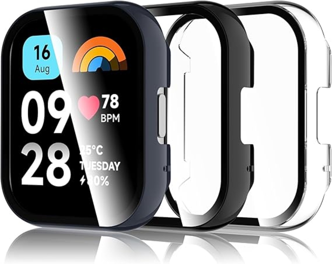 Bigqin Xiaomi Redmi Watch 3 Active 対応 ケース 【3枚入り】一体型 全面保護カバー 極薄軽量 指紋防止 高透過率 擦り傷防止 取扱簡単 (PCフレーム+強化ガラス) a