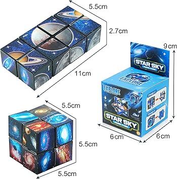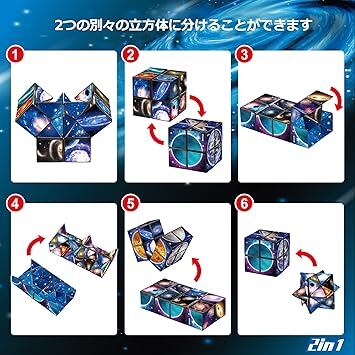 Infinity Cube Toys マジックスターキューブ 2in 1立体キューブ 折りたたみキューブ 無限キューブパズル 魔方 2 in 1セット 無限キューブ ユークリッドキューブ インフィニティキューブ ストレス解消 育脳 脳トレ 知能ゲーム 知育玩具 星空/土星/月/冥王星/地球/金星/天王星などの写真 a
