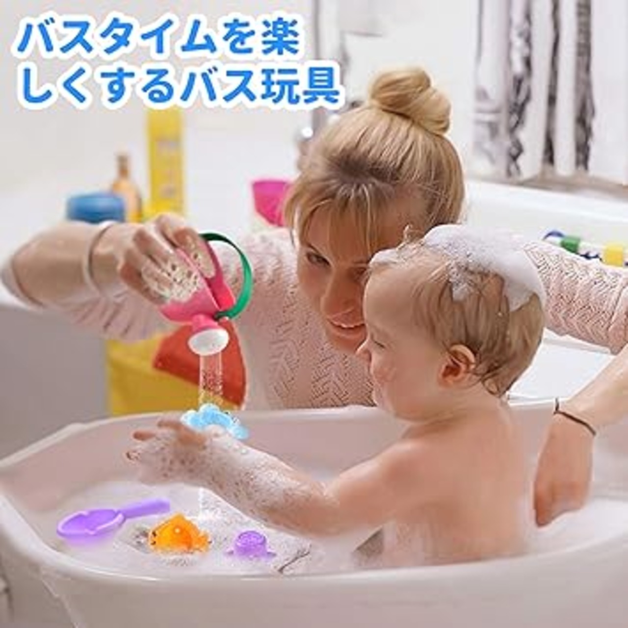 人気 の お風呂 おもちゃ:赤ちゃんが大喜び!柔らかいプラスチック製じょうろ1個、やわらかゴム製バススプーン1本、カラフルなスタッキングカップ3個(色はランダム)のセット。肌に優しい無臭素材で、ふんわりとした触り心地。鮮やかな色彩が子どもの好奇心を刺激し、楽しいお風呂時間を約束します。沐浴が苦手な子も、この赤ちゃん お風呂で笑顔に!お手入れ簡単で衛生的です。