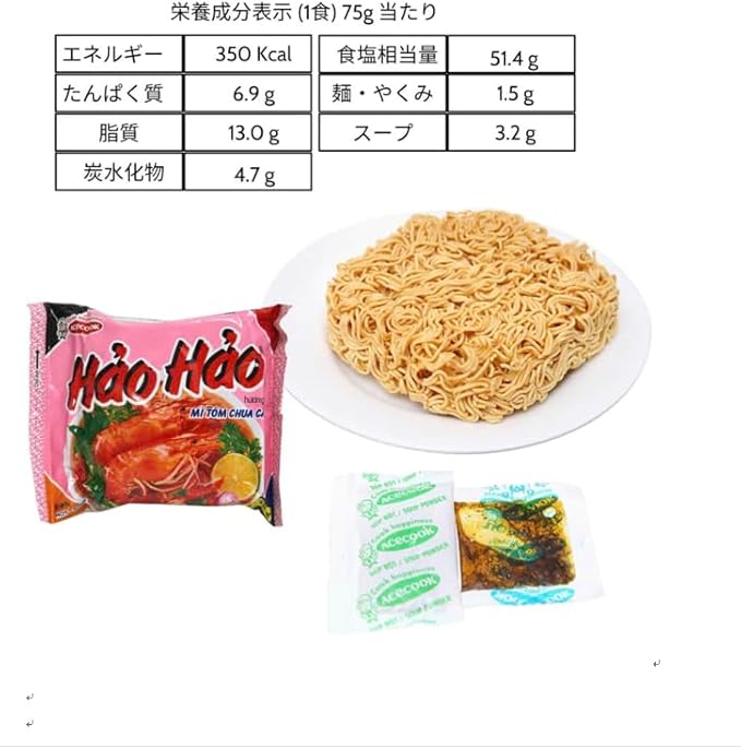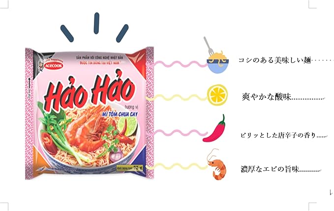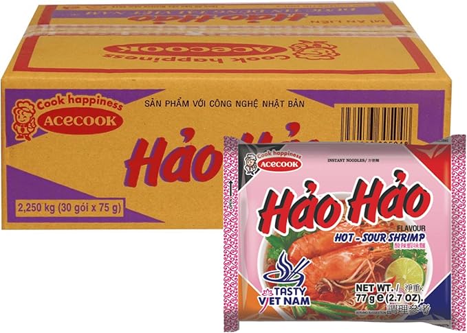 [ACNTECH] エースコック ハオハオ ベトナム インスタントラーメン ピリ辛エビ味 1ケース(30袋入り) | VINA ACECOOK Hao Hao Mi Tom Chua Cay 1ケース(30袋) [並行輸入品] a