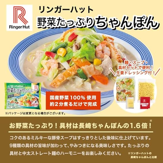 【内容量】・リンガーハットの野菜たっぷりちゃんぽん(1食395g)×4袋・直火炒めチャーハン(1袋230g)×4袋