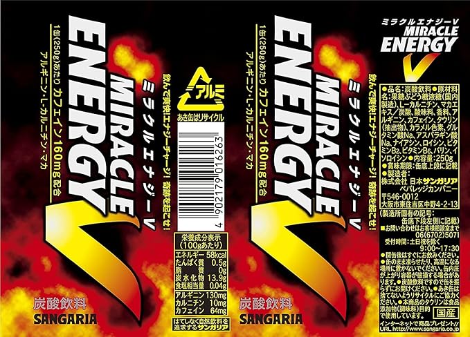 サンガリア ミラクルエナジー V 250g缶×30本入 3ケース a