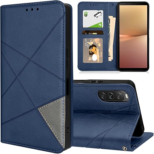 Sony Xperia 10 V ケース 手帳型 SO-52D SOG11 カード収納 財布型 カバー エクスペリア10V 耐衝撃 キックスタンド機能 スマホケース PU合皮 TPU素材 携帯カバー 薄型 軽量 ストラップホール付 ブルー a