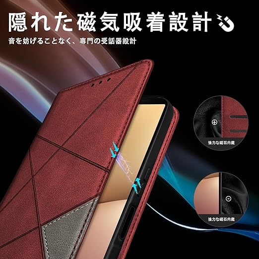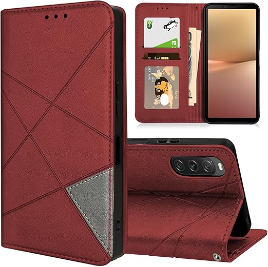 Sony Xperia 10 V ケース 手帳型 SO-52D SOG11 カード収納 財布型 カバー エクスペリア10V 耐衝撃 キックスタンド機能 スマホケース PU合皮 TPU素材 携帯カバー 薄型 軽量 ストラップホール付 レッド a