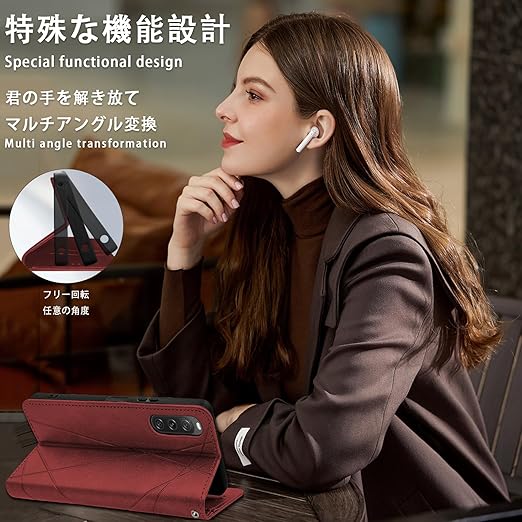 【適用機種】Sony Xperia 10 V (SO-52D SOG11)専用ケース に対応なので。※購入前に対応機種をご確認よろしくお願い致します。外部のカバーは高級感が溢れるPU合皮を採用して、肌触りがよくて耐久性もよく、あらゆる方向からの衝撃、しっかりと本体を保護してくれます。TPU素材を採用、柔軟性が高く着脱が簡単で変形しにくく、ベタつかず適度な柔らかさで触り心地が良い。