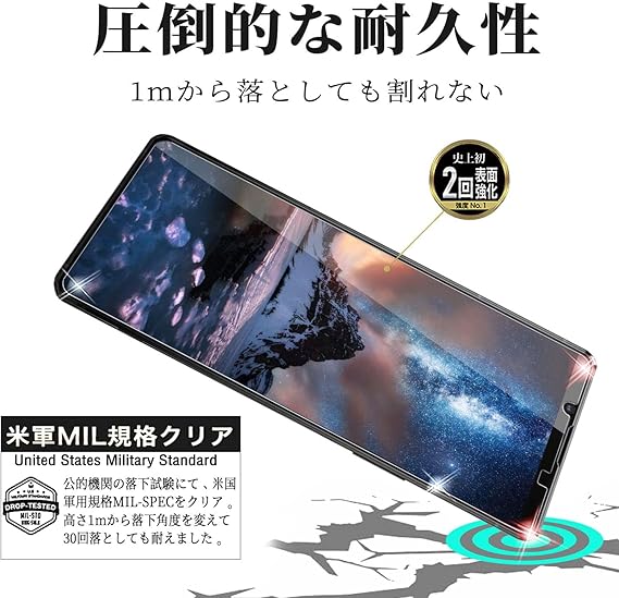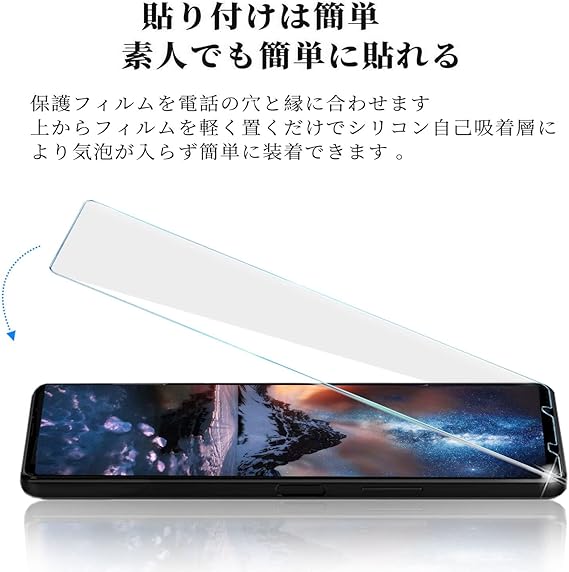 『対応機種』 Xperia1 II (SO-51A SOG01)専用。携帯は端部のカーブがフィルム剥がれ、浮きの防止、スマホケース装着スペース確保のため、機器の曲面の縁にスペースを残すデザインとなっています。