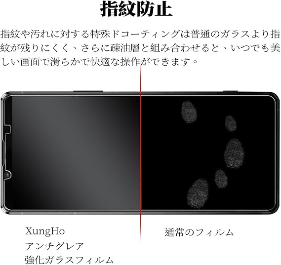 『アンチグレア』XungHo独自の反射防止コーティングの加工で、ディスプレイの表面に太陽光や蛍光灯などの反射を抑えます。視認性を向上させて画面が見えやすくなり、目の負担を軽減できます。更にサラサラ手触りで指紋の跡が残りにくく、指のすべりが滑らかでゲームをするのに適しています。