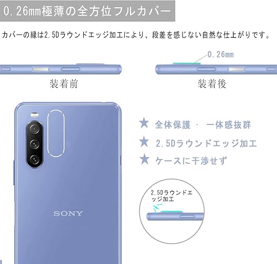 Xperia 10 III/Xperia 10III Lite レンズフィルム 【 3枚セット- 日本旭硝子 】 SO-52B / SOG04 カメラフィルム エクスペリア 10III レンズ保護フィルム 2.5D ラウンドエッジ 加工 気泡無し 薄型 装着簡単 耐衝撃 高硬度 高透過率 気泡ゼロ 撥水撥油 指紋防止 飛散防止 a