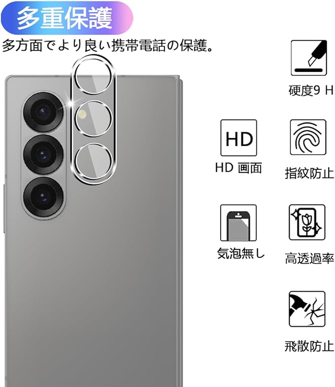 【2枚セット】 対応 Galaxy Z Fold6 SC-55E カメラフィルム 【日本旭硝子 硬度9H】 Galaxy Z Fold 6 用 レンズフィルム カメラ保護フィルム 対応 ギャラクシー Z Fold6 カメラ レンズ保護 3D Touch対応 、高透過率 、気泡ゼロ 、防爆裂 、飛散防止 、衝撃吸収 、指紋防止 、ラウンドエッジ加工 、簡単貼り付け a