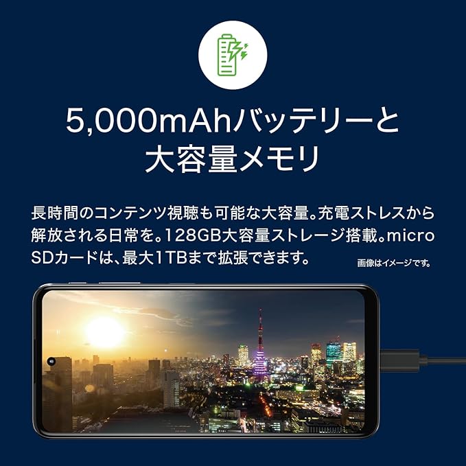 バッテリー:5,000mAh、サイズ(高さx幅x厚さ):約171.0mm x 76.8mm x 9.1mm(最薄部)、重さ:約206g