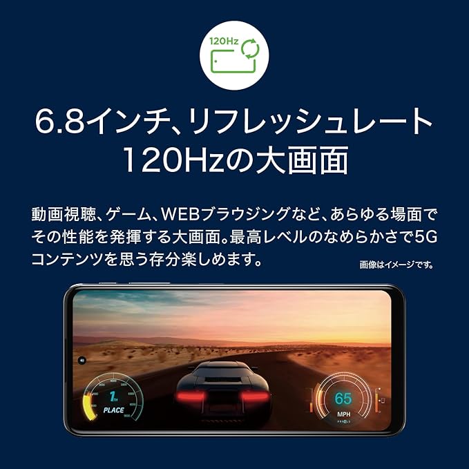 約6.8インチ 2,460x1,080 (FHD+)、20:9、IPS、リフレッシュレート 120Hz
