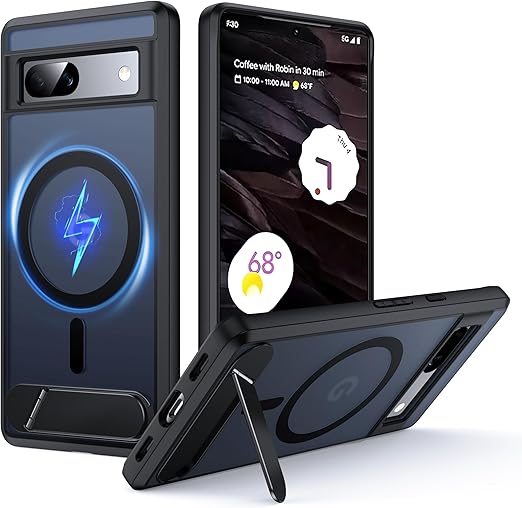 FNDMIL Google Pixel 7a 用 ケース MagSafe 対応 [折りたたみスタンド] [立ったまま充電] [ミリタリー耐衝撃] 半透明マット シリコンバンパー電話ケース Google Pixel 7a 用 ケース スリム (ブラック) a
