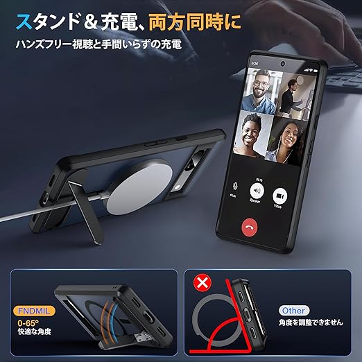 【MAG×STAND ? Magic 2 in 1】FNDMILはGoogleユーザーに優れた磁気保護ケースを開発しました。今回、スタンド付きのGoogle Pixel 7aケースは、美しさ、保護性、快適さを兼ね備えた高度な技術を採用しており、ハンズフリーで作業したり、複数の角度に傾けたりしながら、途切れることのないワイヤレス充電を実現しています