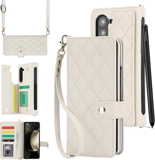 galaxy Z Fold6 ケース 純正 五色 人気 高級レザー 全面保護 galaxy Z Fold6 ケース sペン収納 バック一体化 おしゃれ カード入れ (ホワイト) a