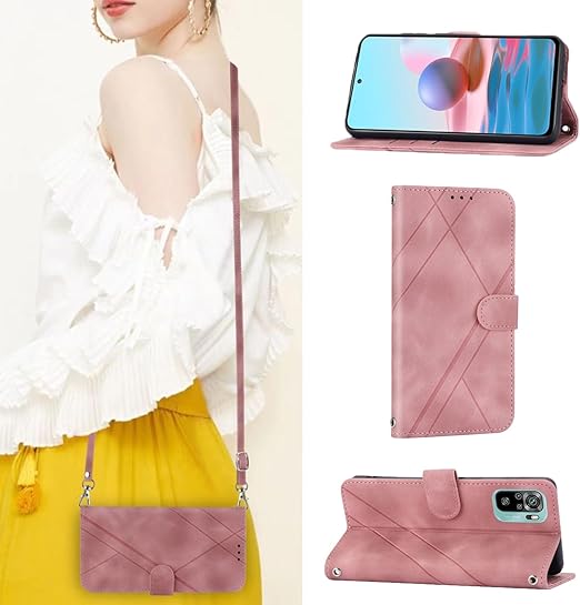 Refilerss ケース 手帳型 スマホケース肩掛け首かけ 斜めがけ ショルダー 携帯ケース redmi note 10 je ケース クロスボディケースカード 磁気ボタン機能 - ピンク a