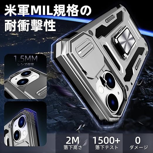 Redmi Note 13 Pro 5G / Xiaomi Poco X6 5G 用 ケース リング 耐衝撃 車載ホルダー対応 カメラ保護 傷防止 米軍MIL規格 携帯カバー 滑り止め 指紋防止 頑丈 タンド タフ・アーマー おしゃれ TPU+PC材質 グレー 111-HMN13PRO-06 a