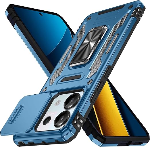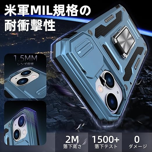 Redmi Note 13 Pro 5G / Xiaomi Poco X6 5G 用 ケース リング 耐衝撃 車載ホルダー対応 カメラ保護 傷防止 米軍MIL規格 携帯カバー 滑り止め 指紋防止 頑丈 タンド タフ・アーマー おしゃれ TPU+PC材質 スカイブルー 111-HMN13PRO-04 a
