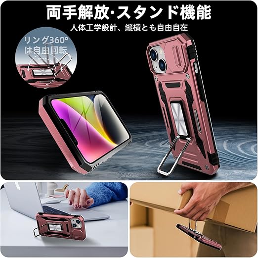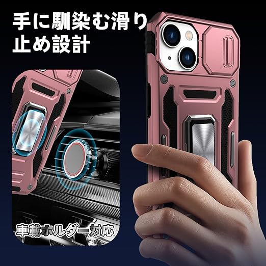 Redmi Note 13 Pro 5G / Xiaomi Poco X6 5G 用 ケース リング 耐衝撃 車載ホルダー対応 カメラ保護 傷防止 米軍MIL規格 携帯カバー 滑り止め 指紋防止 頑丈 タンド タフ・アーマー おしゃれ TPU+PC材質 ローズゴールド 111-HMN13PRO-05 a