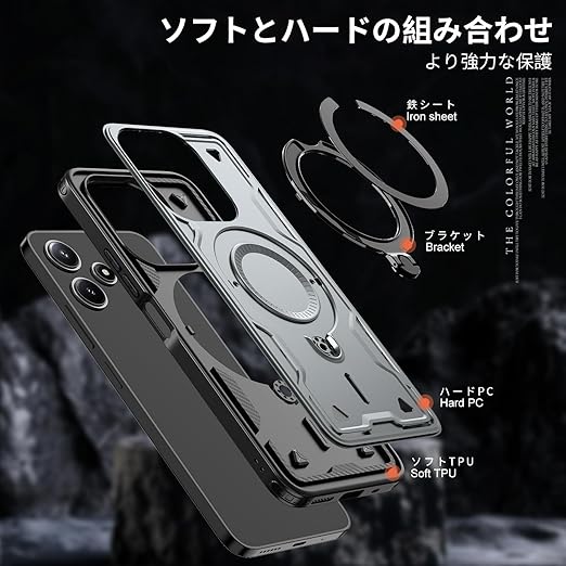 Xiaomi Redmi 12 5G 用 ケース 耐衝撃 スタンド付き Magnetic対応 Redmi 12 5G カバー リング TPU+PC ワイヤレス充電 米軍MIL規格取得 スタンド機能 (グレー)117-XM125G-07 a