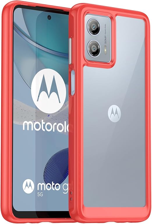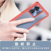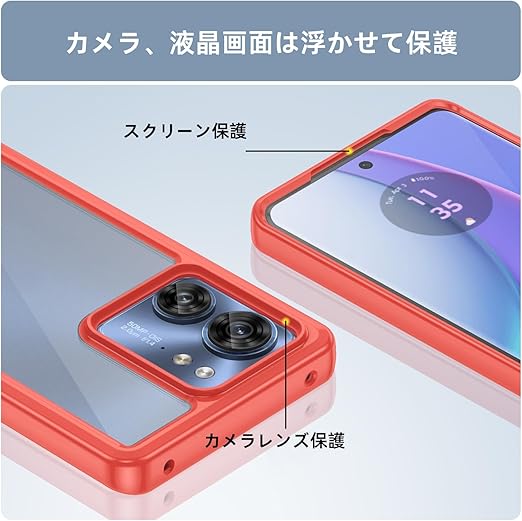 Motorola Moto G53 5G 用 ケースクリア 耐衝撃 薄型 米軍MIL規格取得 指紋防止 TPUバンパー+背面PC G53J 5G / G53Y 5G カバー レンズ保護 滑り防止 ストラップホール付き 黄変防止 滑り防止 携帯カバー 赤 R0113-MTG53-04 a