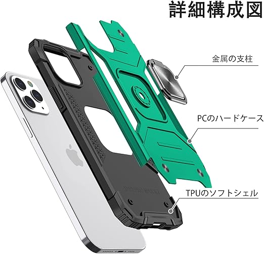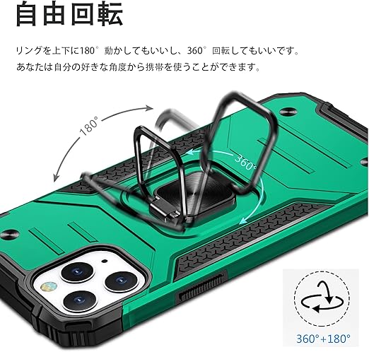 Zenfone Max (M2) ケース リング 衝撃吸収 耐衝撃 落下防止 米国軍事MIL標準取得 スタンド機能 PC+TPU 二重構造 防塵 薄型 軽量 一体型 360度回転 全面保護カバー Zenfone ケース 緑 MJJ-SJ-1051-8-06 a