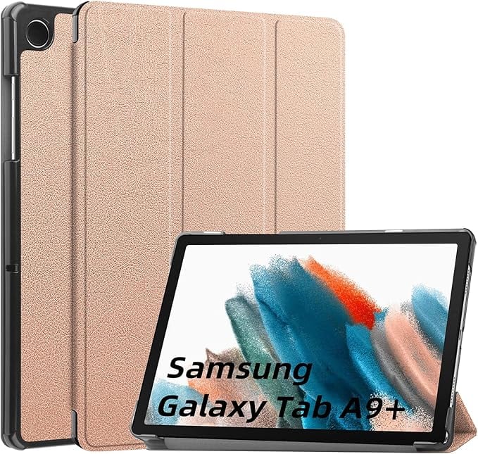 RUIIOCVKK for サムスン Galaxy Tab A9+ ケース 超軽量 極薄 高級PU レザー 開閉式三つ折 スタンド スマートケース スタンド 機能 スマートカバー Galaxy Tab A9 Plus 11型 対応(ローズゴールド) a