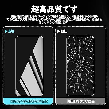 【9H硬度・日本製ガラス素材】日本旭硝子製ガラス素材採用 最上級強度のガラスを使用し表面硬度は9H。万が一スマホを落としてガラスが割れても、 ガラス破片が飛び散らないような安心設計。 飛散防止 、ガラス破片から守ります。