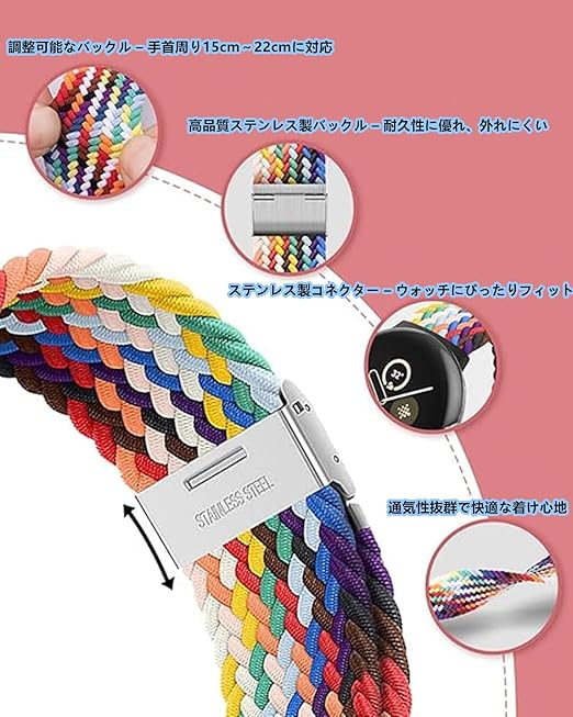 対応モデル:Google Pixel Watch 3(45mm・2024年発売)専用に設計されたナイロン製の伸縮性バンドです。※Pixel Watch 3(41mm)には対応しておりません。