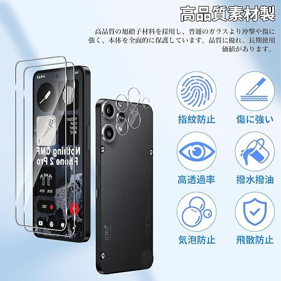 【対応機種】Nothing CMF Phone 2 Pro 対応。ガラスフィルム*2+透明レンズフィルム*2。誤発注のないよう、ご註文前に型番をご確認くださいますようお願いいたします。