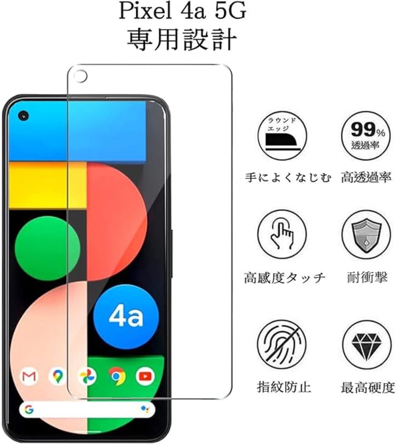 『 対応機種 』Google Pixel 4a 5G (6.2インチ)に適応しています。携帯は端部のカーブがフィルム剥がれ、浮きの防止、スマホケース装着スペース確保のため、機器の曲面の縁にスペースを残すデザインとなっています。Pixel 4a(5.8インチ)には対応しておりませんので、注意してください。