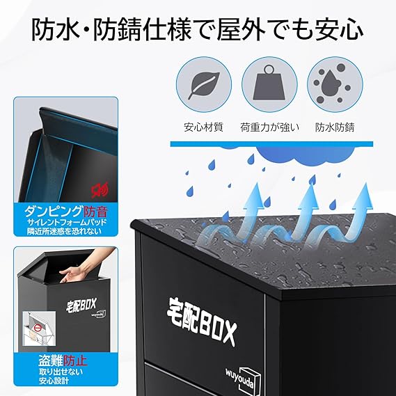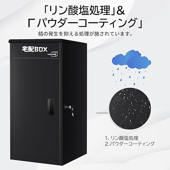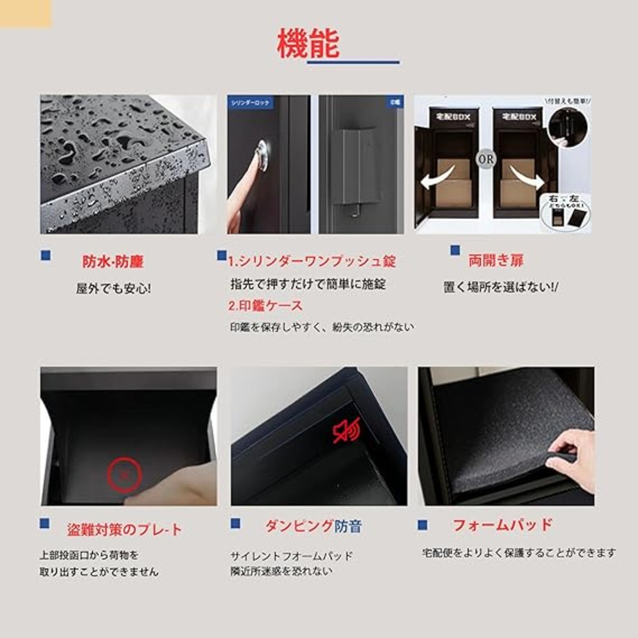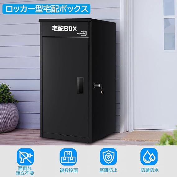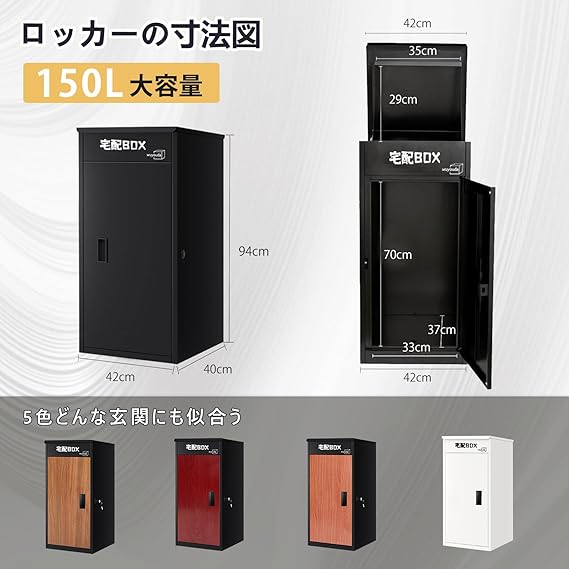 置き配に最適!両開き扉&設置簡単! 両開き扉で、扉の向きを自由に変更可能です。組み立て不要の完成品