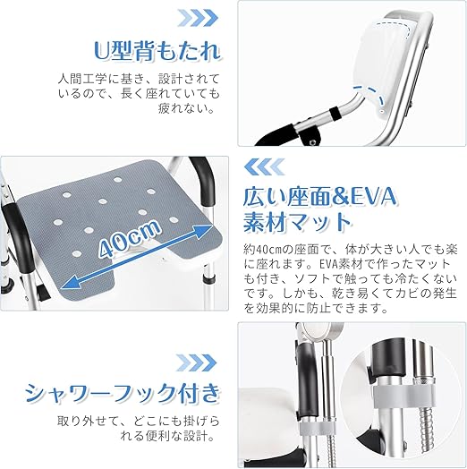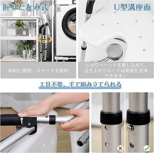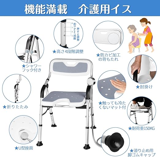 お風呂椅子 介護用 折りたたみ 介護 風呂 椅子 U型座面 耐荷重150kg シャワーチェア 折り畳み 高さ4段階調節 シャワーチェアー 背もたれ付 介護用品 風呂椅子 肘掛け付き 立ち上がり補助 カビない お風呂介護椅子 コンパクト アルミ合金製 軽量 丈夫 転倒防止 組み立て簡単 日本語説明書付 (グレー, U型座面) a