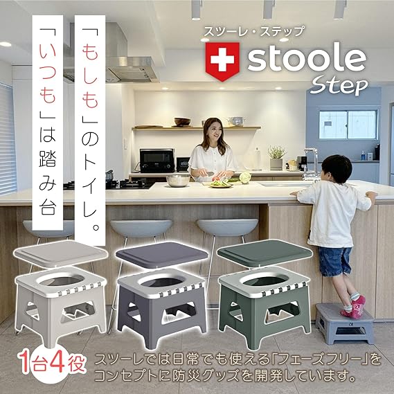 スツーレ 【防災グッズ大賞受賞】 Step 簡易トイレ 日常はイスや踏み台に ポータブルトイレ 携帯トイレ 耐荷重150kg 排便袋&凝固剤付き (ブラック, M) a