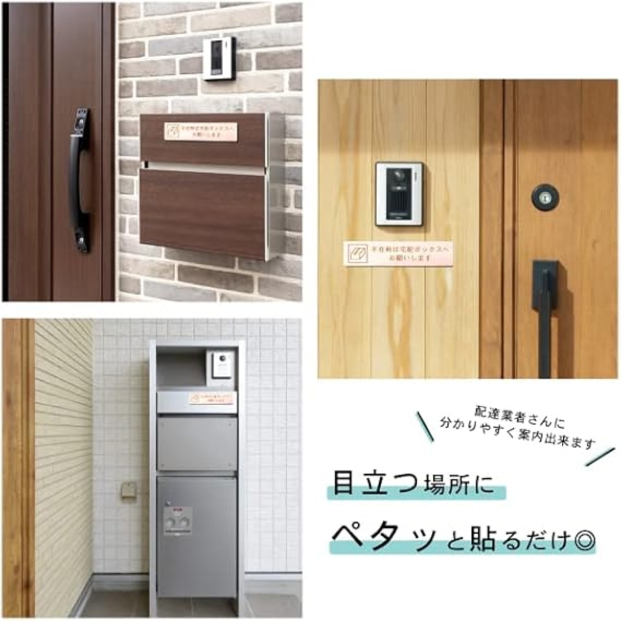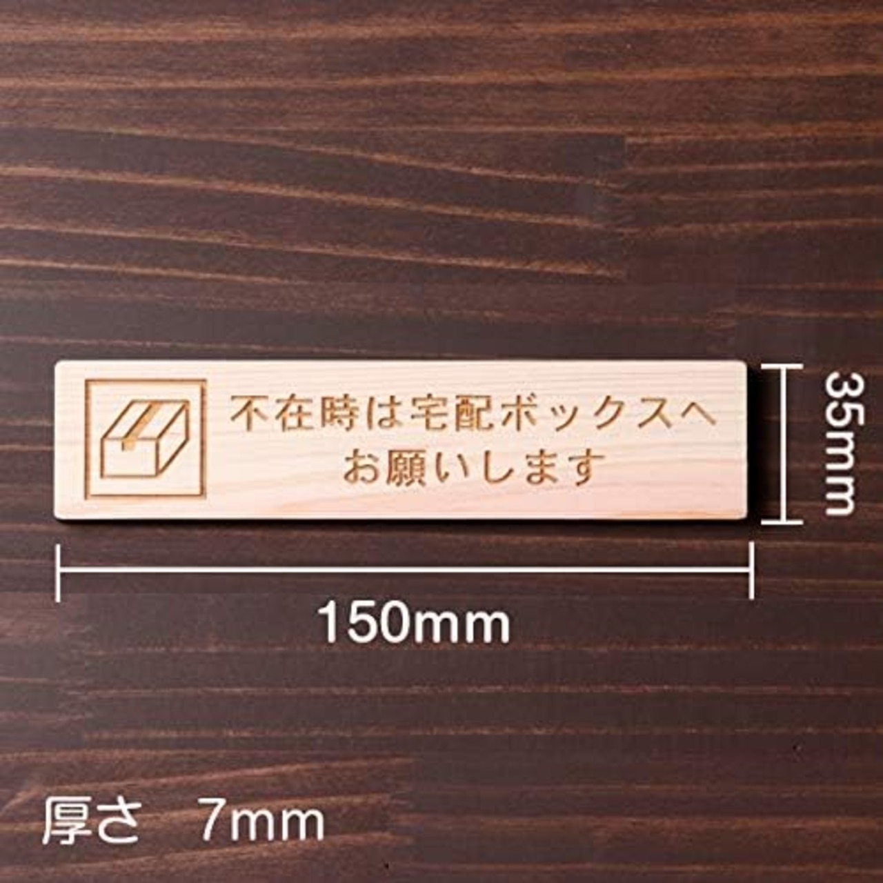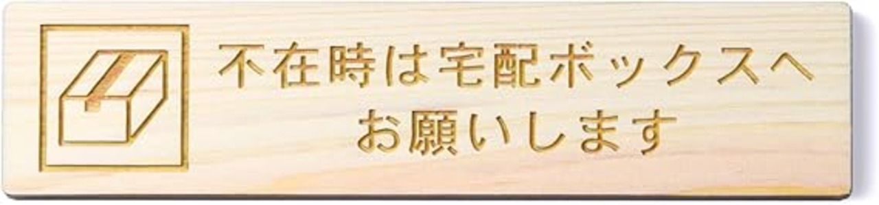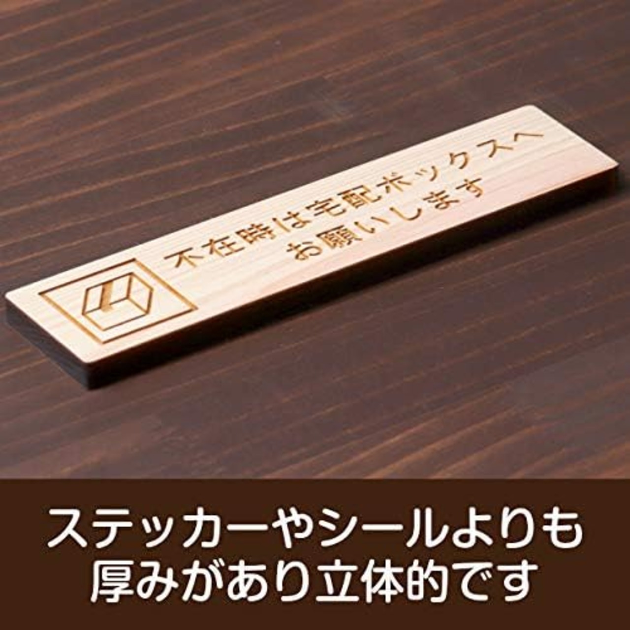 かたちラボ サインプレート 不在時は宅配ボックスへお願いします 木製 置き配達 屋外対応 シール式 日本製 ナチュラル a