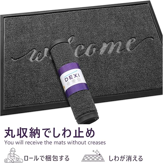 DEXI 玄関マット 屋外用 室内 迎え WELCOME 泥落とし 吸水 滑り止め 耐久性 おしゃれ ラバー エントランス お店 家庭用 業務用 45x75cm グレー a