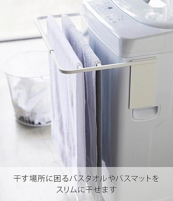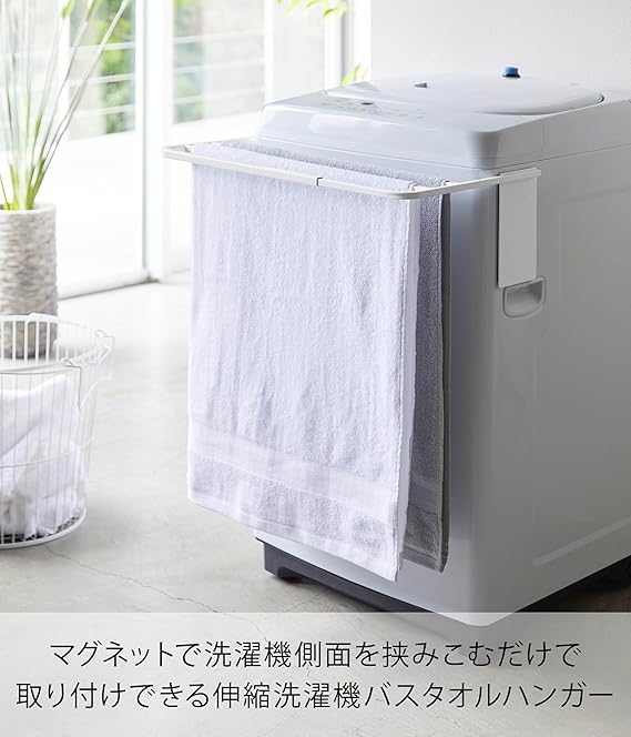 山崎実業(Yamazaki) マグネット伸縮洗濯機バスタオルハンガー ホワイト 約W43XD32XH18cm プレート タオル掛け 置き棚 4875 a