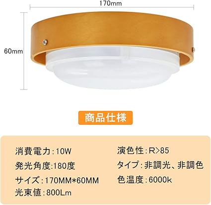 「サイズ」天井に取り付けて部屋を明るく照らす室内灯シーリングライトは軽い材質を採用しています。和風で優しい雰囲気を作り出すライト。直径約170mm x 高約さ60mm、フレ一ムは木目で軽い材質、和風で優しい雰囲気を作り出すライト、消費電圧:86−265V 周波数:50/60Hz。ルーメン:800 lm 工事不要と簡単取付