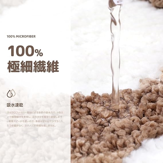 【吸水速乾性が抜群】:マイクロファイバー素材による抜群の吸水力で、5倍以上で瞬間吸水を実現し、足の水分を素早く吸収します。蒸発スピードも速いので、表面はすぐにサラサラ!べたつき感がなく、次の人に不快感を残しません。