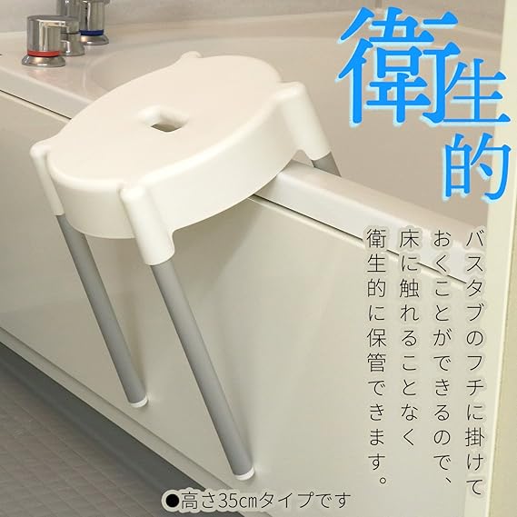 座面が丸型なので、座る方向を選ばない。また、座ったまま向きを替えやすいので風呂場内での作業が楽。