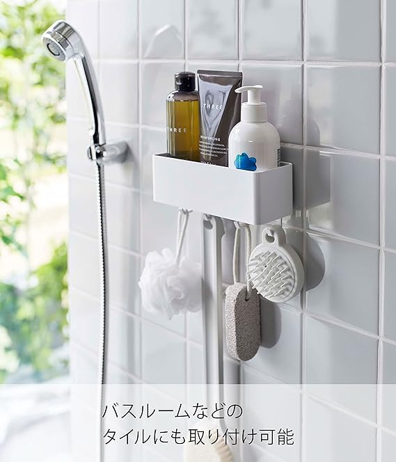 山崎実業(Yamazaki) フィルムフック ラック W18 ホワイト 約W18×D7.5×H6cm ミスト MIST 浮かせて 一括収納 洗面収納 キッチン収納 5966 a
