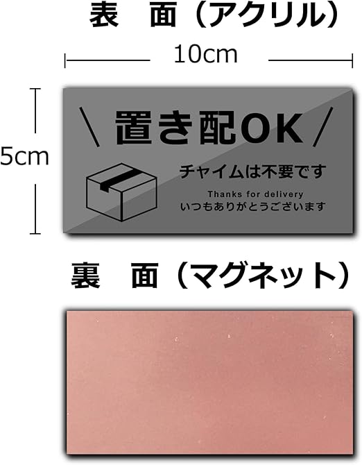 XILIWU 置き配OK マグネット アクリル製 10×5㎝ 屋外用 サインプレート 宅配ボックス 宅配BOX 再配達 防水 耐候 玄関 (チャイムは不要です, グレー(マグネット)) a