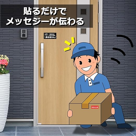 玄関のドアやインターホンの近くに貼ることにより、配達員に置き配希望を知らせることができます。