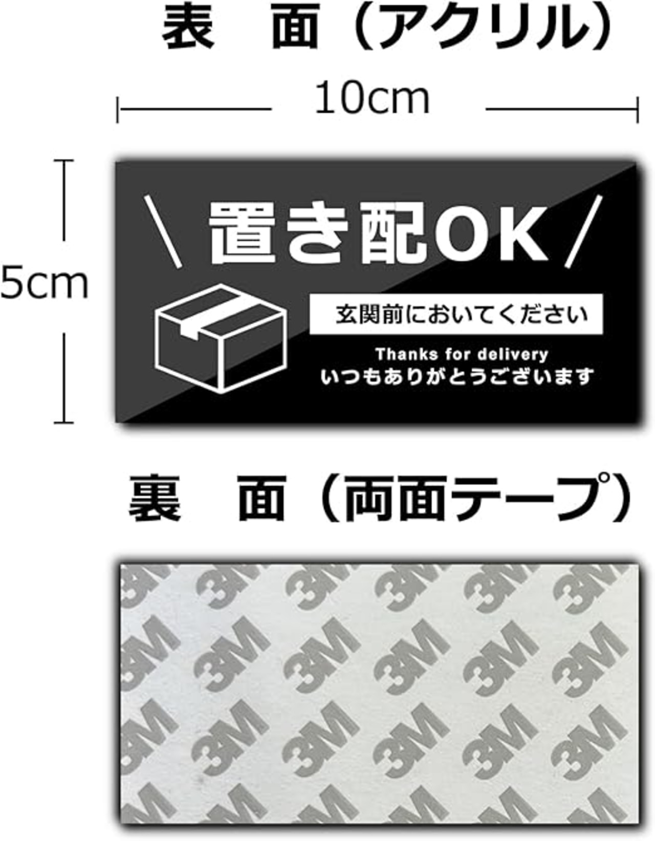 XILIWU 置き配OK ステッカー シール アクリル製 10×5㎝ 屋外用 サインプレート 宅配ボックス 宅配BOX 再配達 防水 耐候 玄関 (玄関前に置いてください, ブラック(ステッカー)) a