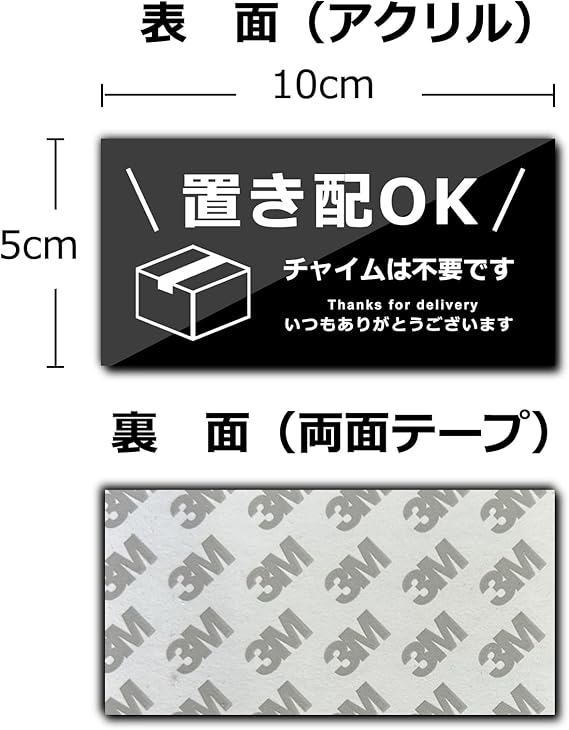 XILIWU 置き配OK ステッカー シール アクリル製 10×5㎝ 屋外用 サインプレート 宅配ボックス 宅配BOX 再配達 防水 耐候 玄関 (チャイムは不要です, ブラック(ステッカー)) a