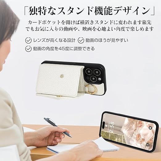 財布??機能??:このピクセル10 ケース ショルダー の背面にはカードポケットが付いており、名刺、定期券、運転免許証、現金などを収納できます。カードポケット内には小さな鏡が付いているので、女性のメイク直しにも最適です。ボタン式の開閉でし